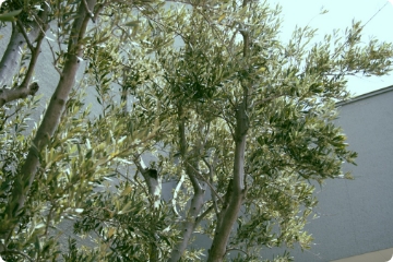 - 搾油の役目を終え、次の世代を静かに見守る樹齢百年近いオリーブの木。