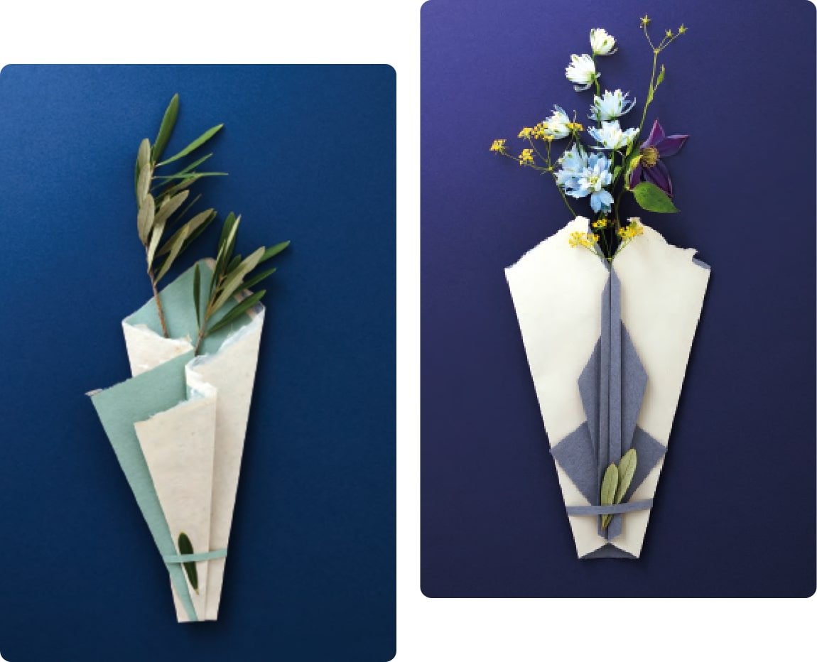 日本に古来より伝わる相手を思う礼法「折形」に着想を得たふわり独自の納棺サービスが『祈形 -Inorikata-』です。故人様へ想いを込めながら和紙を折り、ふわりの植栽を包んで棺に入れ、旅立ちの安寧を祈ります。